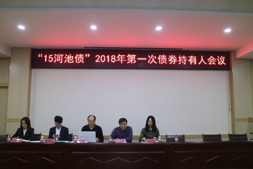 經(jīng)精心籌備和周密部署,2018年11月1日,“15河池債”2018年第一次債券持有人會(huì)議在我公司二樓電教室順利召開。按照債券持有人會(huì)議規(guī)則規(guī)定,在見證律師現(xiàn)場見證下,公司董事、總經(jīng)理助理趙家麟代表我公司在會(huì)上宣讀了會(huì)議紀(jì)要,債券持有人隨后進(jìn)行了非現(xiàn)場投票,通過監(jiān)票人現(xiàn)場統(tǒng)計(jì)結(jié)果,投同意票的共600萬張,占本次持有人會(huì)議代表有表決權(quán)的本期債券總張數(shù)的85.71%;投反對票的0張,占本次持有人會(huì)議代表有表決權(quán)的本期債券總張數(shù)的0.00%;棄權(quán)票100萬張,占本次持有人會(huì)議代表有表決權(quán)的本期債券總張數(shù)的14.29%。本次持有人會(huì)議的議案獲得出席會(huì)議債券持有人或代理人所持表決權(quán)的二分之一以上同意,符合議案表決通過的條件,并于次日掛網(wǎng)公告。
